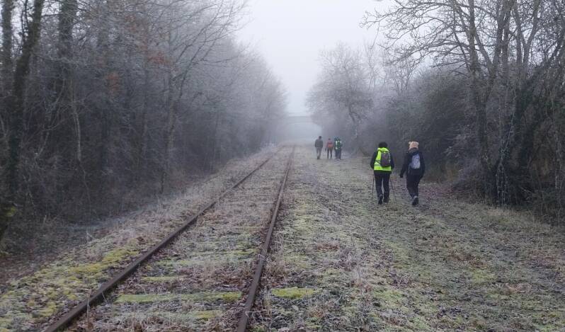 Enfin ! Du soleil, en veux-tu en voilà. En ce jeudi de fin novembre, 37 randonneurs et randonneuses forment une chenille colorée dans la campagne du pays d'Othe. Quel plaisir...